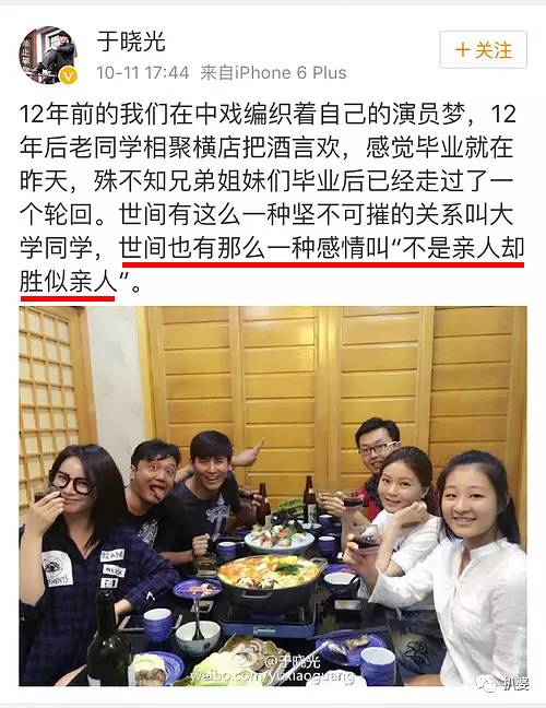 事后于晓光给出的解释是,牵手的女性是他大学同学,大家是“不是亲人胜似亲人”的关系。