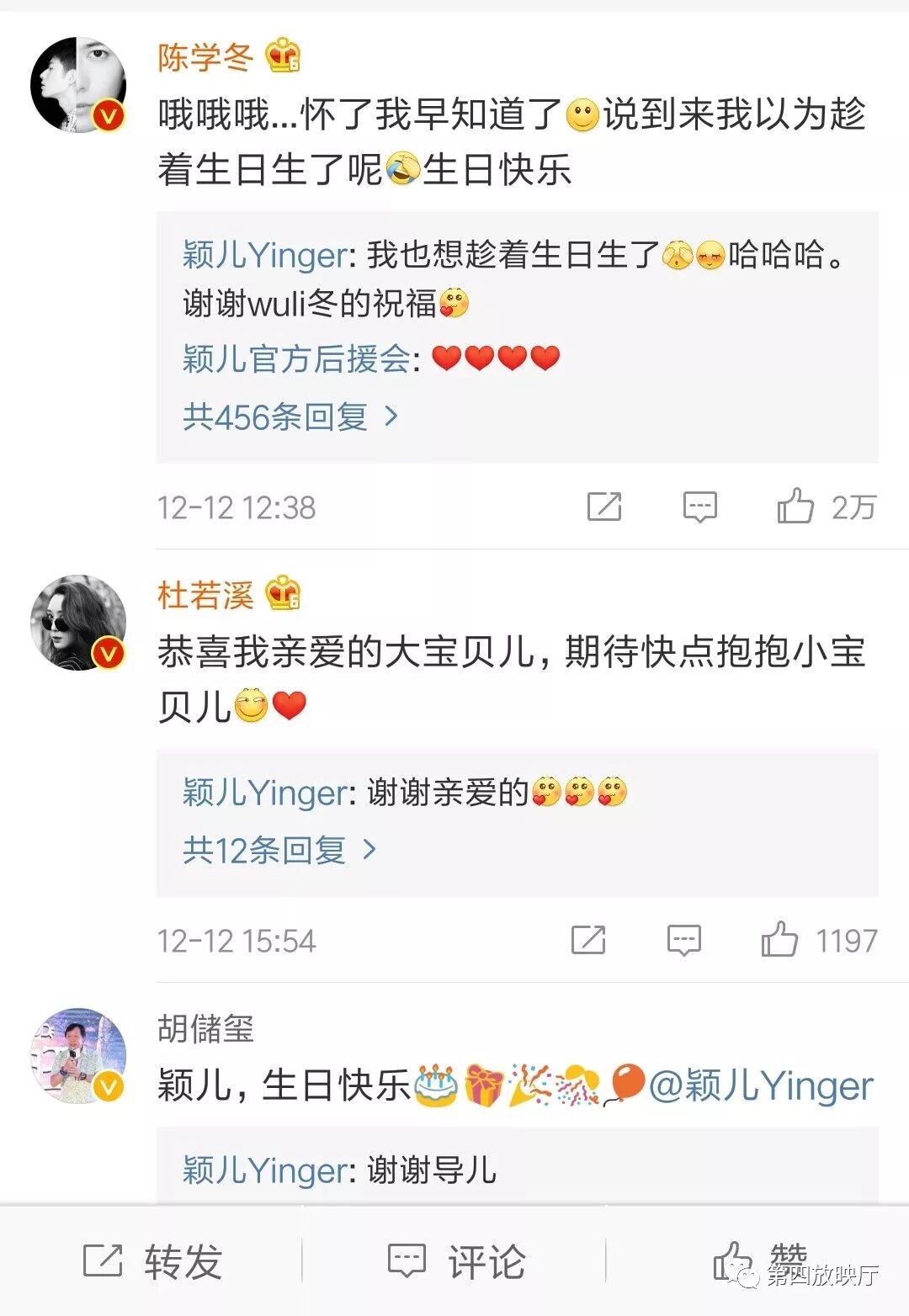 小伙伴们也是惊呆了,表示纷纷围观!原来是颖儿怀孕了!!!!圈内一众好友,也是在第一时间纷纷送上祝福!!