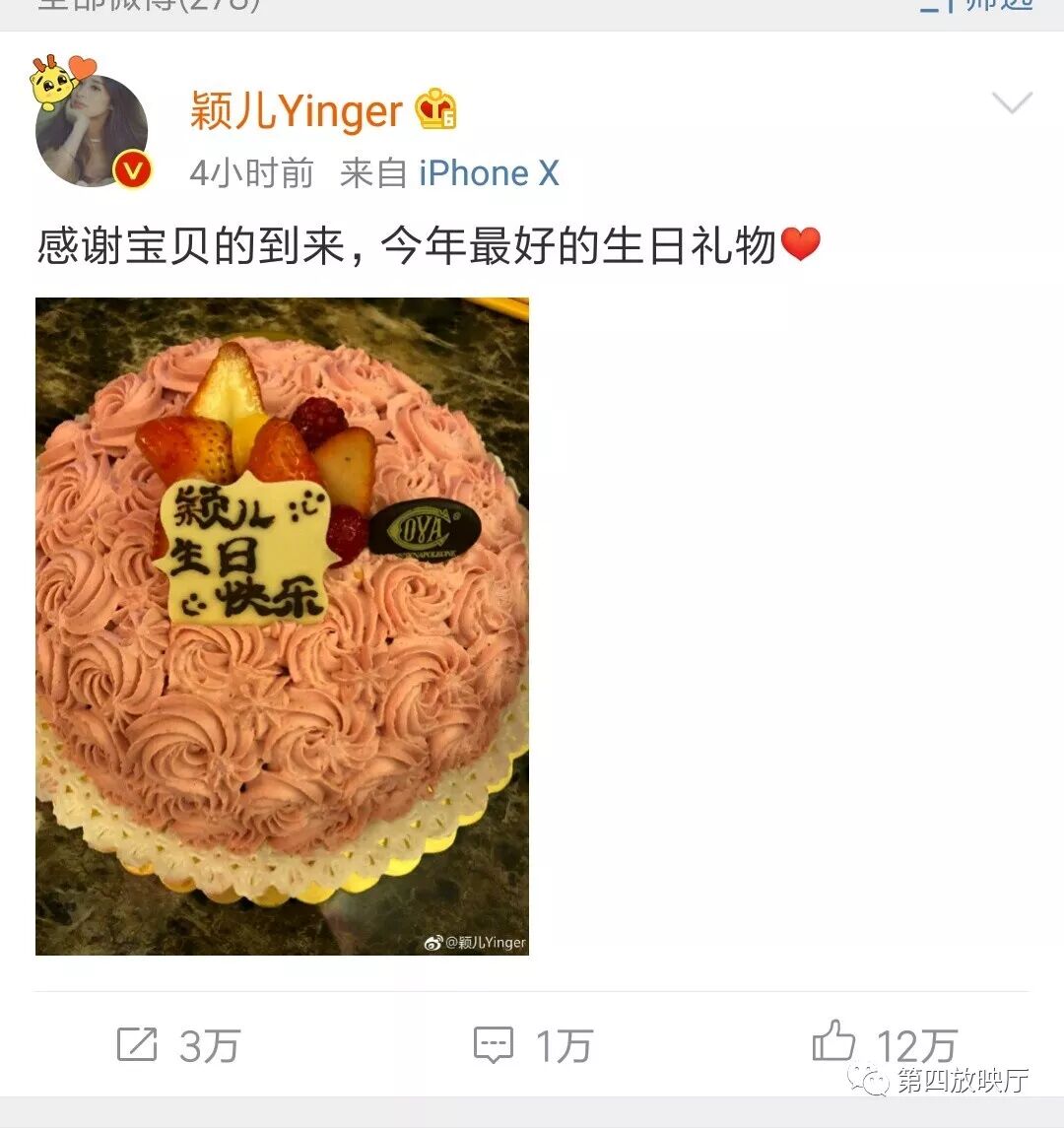 12月12日,是影星颖儿Yinger的生日,然而她微博发文:“感谢宝贝的到来,今年最好的生日礼物”