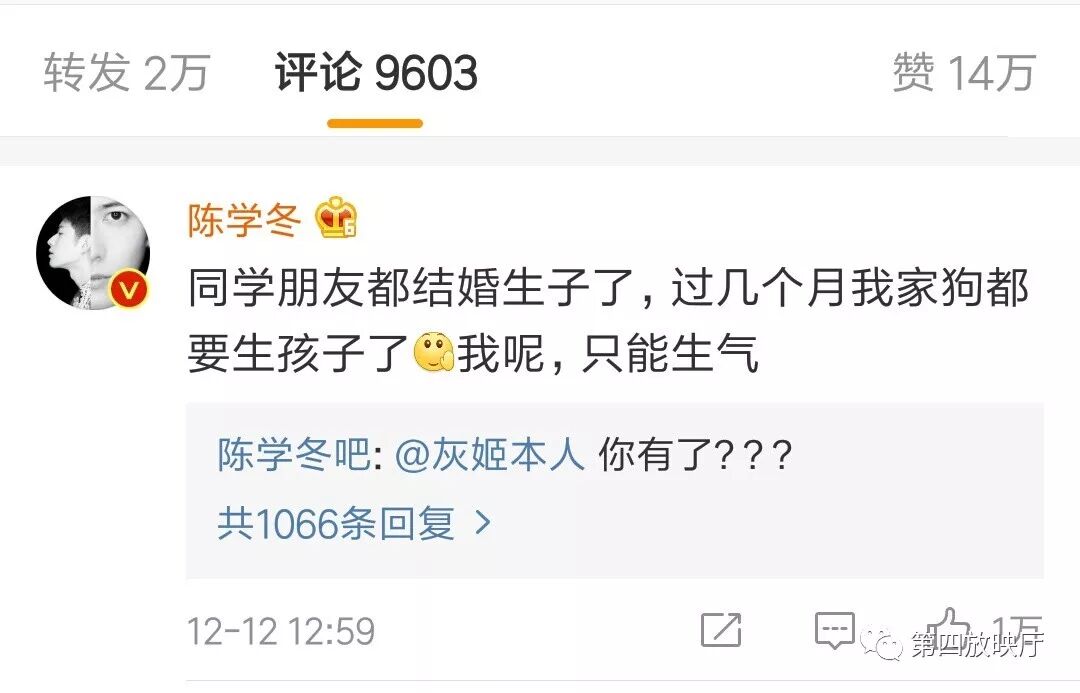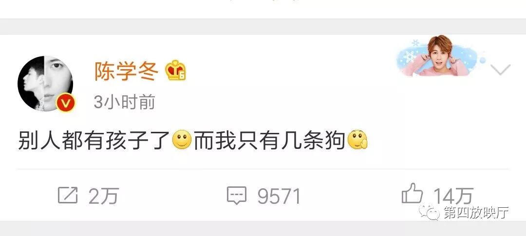 有趣的是,陈学冬调侃自己说:“别人都有孩子了,而我只有几条狗”
