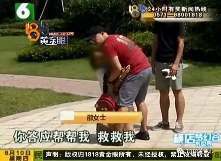 邵女士家住余杭临平,见到记者,邵女士就哭着跪了下来,记者赶紧将她扶起,邵女士的右眼有淤青,身上也有外伤。