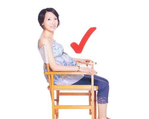 孕妇想要坐下时,要先确定椅子是否稳固,可不要眼不看就一屁股往后坐。不妨以手作为探测器,确定椅面后慢慢地由椅边往里靠,直到后背笔直地倚靠在椅背上,而股关节和膝关节最好成直角,大腿要保持水平状态。一屁股猛然就坐下,或长时间坐在软绵绵的沙发上都是不好的。