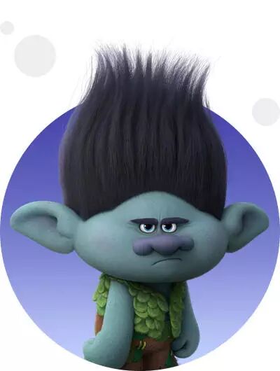 长着灰绿色皮肤和深色冲天发的布兰就是精灵族中一个纯粹的怪人:他每天都不开心,苦着一张脸,既不唱歌也不跳舞,还总是吐槽别人。布兰把自己关在层层加固的地窖里,每天晚上都锁上门。他一方面特别担心天敌博啃族会再次侵犯他们,一方面又觉得波比公主是自己噩梦一般的大麻烦。