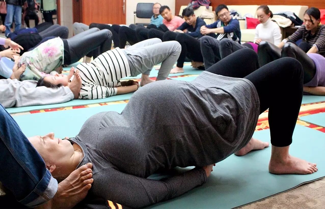 12月30日下午,厦门市妇幼保健院携手厦门悦伽瑜伽理疗中心,以「”孕”动瑜伽」为主题,邀请妇幼保健院VIP宝爸宝妈参与“夫妻双人”瑜伽。怀着喜悦而期待的心情,我們终于等来了中国孕产瑜伽创始人、悦伽瑜伽教学总监苗若彤老师。
