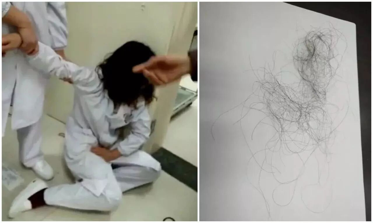 朱女士的同事李女士说,她看到朱女士瘫坐在地上,头发掉了一团,她和另外几名同事才扶起来,让朱女士坐在椅子上,朱女士一直在哭泣。