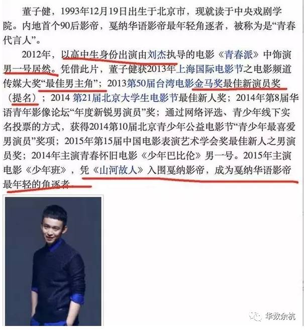 董子健作为1993年出生的小鲜肉,有人曾经用“3511”四个数字来总结董子健的业内成绩:出道3年,5个影帝,1家公司,1亿赞助。