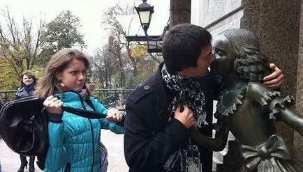 正和我女友聊天呢她跑到我们身边抱着我亲了口,跑了……