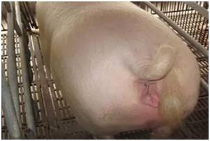 假发情又叫妊娠发情,就是母猪受胎后,在下次预定发情期前后1~2天内,仍有轻微的发情表现。这种假发情与真发情不同,其发情表现不明显,一般只有阴户略微肿胀,母猪稍有不安,但食欲下减,且食后能安静地卧下休息;当把母猪轰起时,其尾巴不像真发情母猪那样举起摇晃,而是自然下垂或夹着尾巴走路;假发情的母猪,对公猪的反应不明显,一般都拒绝交配。