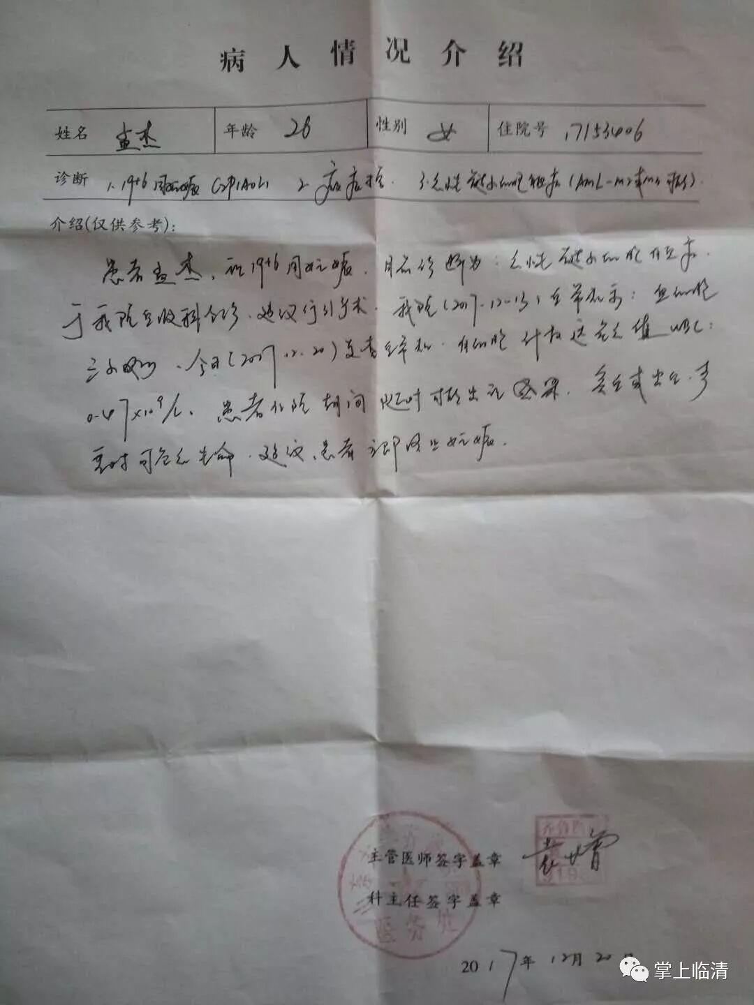 诊断书的大致内容是患者孟杰确诊为白血病,并建议立即终止妊娠!