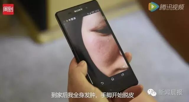 照片显示,吴丽的身体多处出现红肿,手和脚也开始大面积蜕皮。“我很担心自己怀孕了,不敢用药,请假在家里,每天都很压抑。”吴丽说。