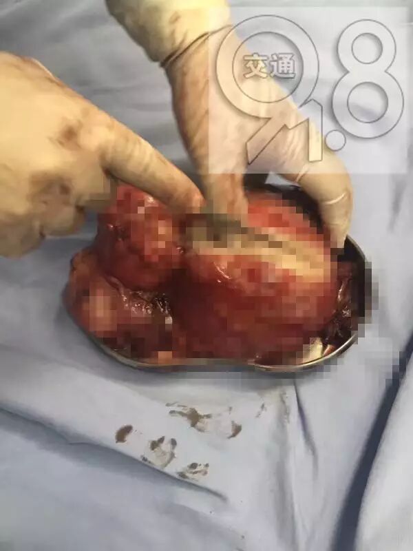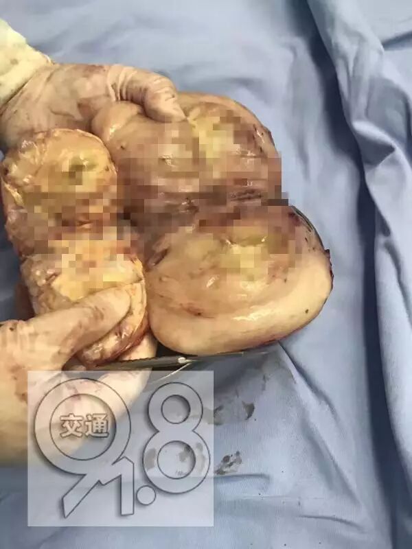 经过CT检查发现,大伯左侧长了一个腹膜后脂肪肉瘤。杭州市中医院泌尿外科黄亚胜副主任坦言:“大伯的肿瘤长在左胃下方,有三四斤重,婴儿头那么大,选择手术治疗。这是生长到一定程度,才会出现的症状。切开这个肿瘤,发现里面都是些脂肪样的物质。”