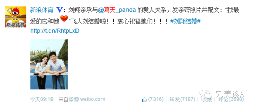 不过去年九月刘翔和葛天结婚还是收到了很多祝福的: