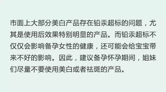 现在市面上很多保养品化妆品都标榜孕妇可用,只要确定成分相对安全是可以继续选择使用的。但是,姐妹们要留意,明确孕妇慎用或者孕妇禁用的,不管是在备孕中还是已经怀孕,都千万不要选择使用了。