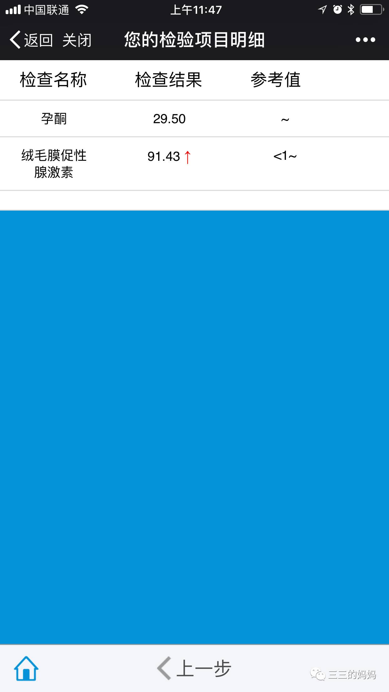 一路心情都特别激动,直到遇到第一位主任医生。她看着我的验孕棒不屑一顾的说,我从来没见过这种验孕棒,一般都是试纸的,你这个出字,不一定准确,而且你还没到月经期,我觉得你可能不一定怀孕了,先验血吧。。尼玛啊。。私利医院的医生就是这样的吗?内心带着一百个白眼去验了血,等待结果的时候内心忐忑了,突然好怕诈胡,突然 觉得什么知识都没有简直是让我忧心忡忡。拿到结果的时候,孕酮29+,hcg 99;护士问我月经期,后来说可能是太早了。我问,我是怀孕了吗?护士肯定的说是的,只要hcg大于1就是怀孕了,而你发现的太早了,所以值不高,后期还是要看翻倍的。于是我高兴的拿着单子去见了那位主任医生,被打脸的感觉很不好,那位主任随机给自己找了一个台阶说,嗯,只能说明你怀孕了,其他都不能说明什么。。。QNMD..我来医院就是来确认我是不是怀孕了。。我还需要什么说明,这次对这里的印象很差,相比第一次的各种满意,我开始打鼓,我是不是要继续留在这里生产。。。。然后兴致勃勃的和三三爸爸驱车前往母婴店,买了人生中第一件也是唯一一件其实并没有什么卵用但是及其昂贵的防辐射衣服。。。。自此开启了我变成孕妇的小日子。。。。