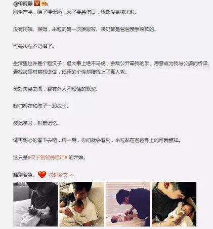 近日,伊能静发文赞老公秦昊:“刚生产完,除了喂母奶,为了要养伤口,我都没有抱米粒。"