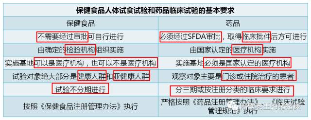 引自钟婷等,保健食品人体试食试验与药品临床试验的比较及联系