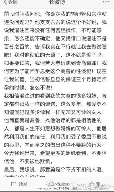 不孕不育是天大的事。近日,微博认证为“妇产科主任医师”的@白衣咸饭,就披露了这样一件骇人听闻的事。