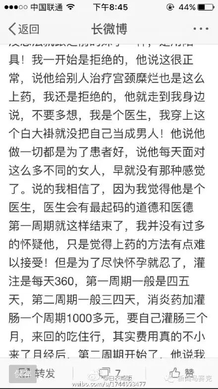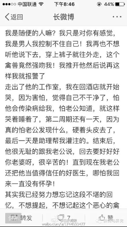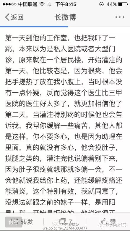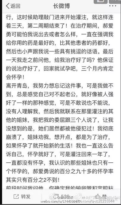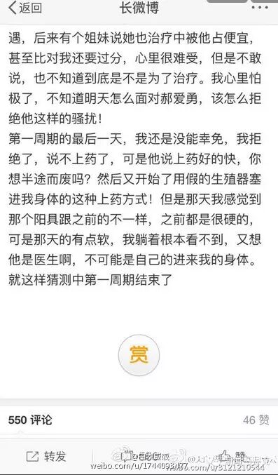 在这位医生转发微博后,单是上午半天就有5位受害女性联系他,受害情况跟上述患者大同小异,出事后也都不愿出来举证,即使匿名。