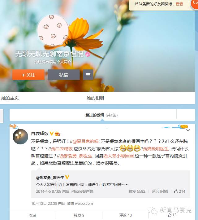 百度百科里,他甚至连职业都没有,就叫做“网络上著名的郝医生”。其微博有粉丝19万,最近一篇停留在10月6日的答患者问上,还显得特别替患者着想。