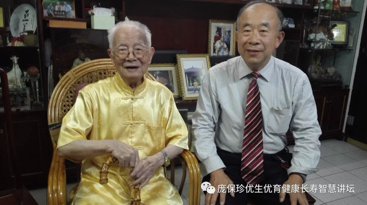 山东名中医药专家庞保珍(右)拜见首届“国医大师”邓铁涛(左)