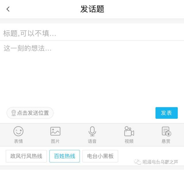 进入点击发帖,选择【百姓热线】板块,就可以发表啦!