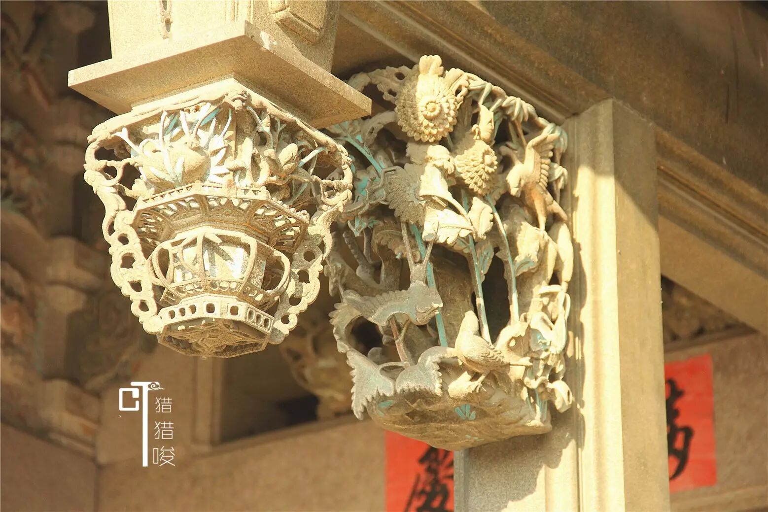 祠堂座东面西,外形恢宏奇伟,气势磅礴,有前后两进,前后厅之间是天井,两侧还有厩轩,后厅有抱厦,从厝花巷,左右龙虎门,前后大庭院……当有人惊叹,有人沉醉,有人已经抑制不住地胡言乱语的时候,猎猎唆还告诉你,这是私家祠堂,那主人就是这么有钱任性。