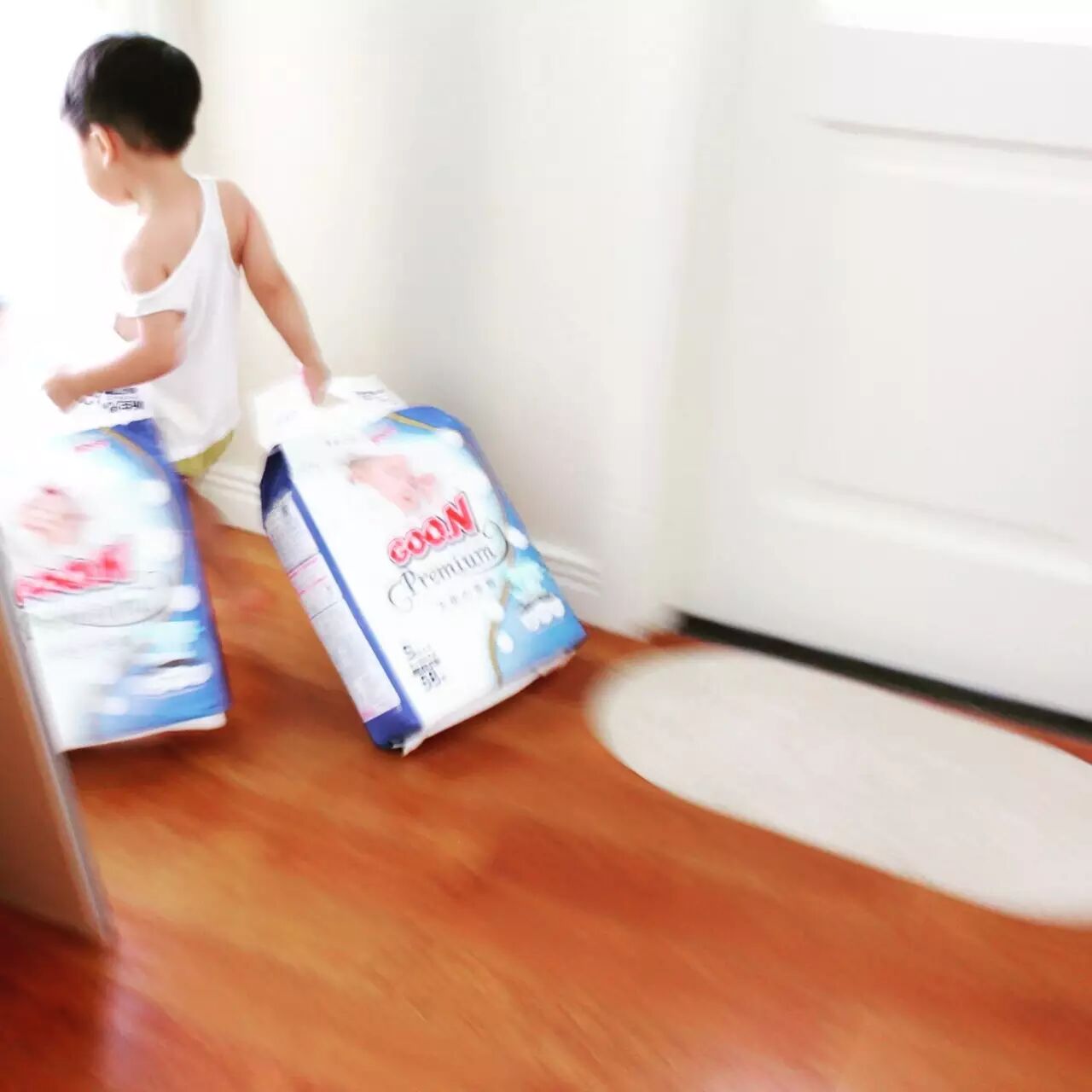 之前Mason用的有两种,一种是德国帮宝适,虽然也不错,但是我买的那家略微不靠谱,货源不太稳定,有的时候衔接不上,德国也许离咱们太远了,而且德国小孩儿的屁股大小和Mason貌似真的不一样,现在家里还有两包闲置呢,等到货了,????️都小了……还有一种是日版花王,我都是从京东买,有的妈妈说京东卖假货,balabala,这些我不予置评,我们用着还可以。我既然选择相信这个渠道,我就不会纠结,也不用荧光笔在黑夜里咪咪着眼睛仔细的去查找防伪码,何苦呢?……