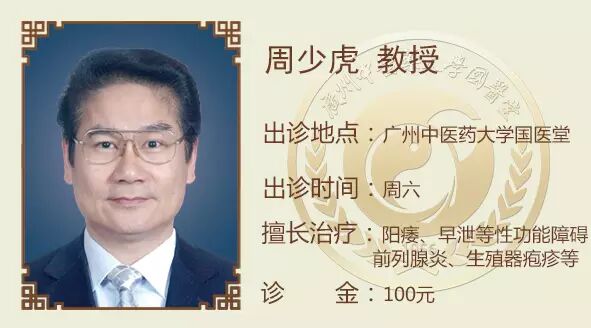 男科专家周少虎教授将于11月28日(本周六)在国医堂义诊(免诊金),当天限号20个名额,需提前预约,并且以后固定逢周六出诊,届时欢迎有需要的患者朋友到国医堂就诊。