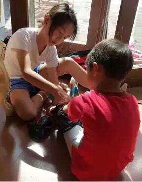 田亮家的大女儿在照顾小儿子时看上去好专业呢~