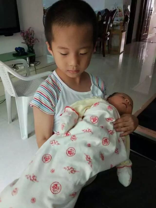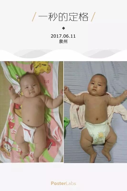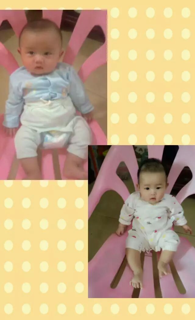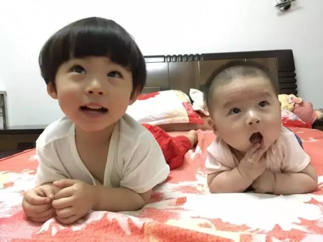 上面姐姐宝儿六个月时(2008年出生),下面弟弟五个月时(2017年出生)