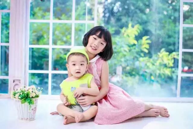 左边弟弟天天2岁时(2015年出生),右边姐姐乐乐9岁时(2008年出生)