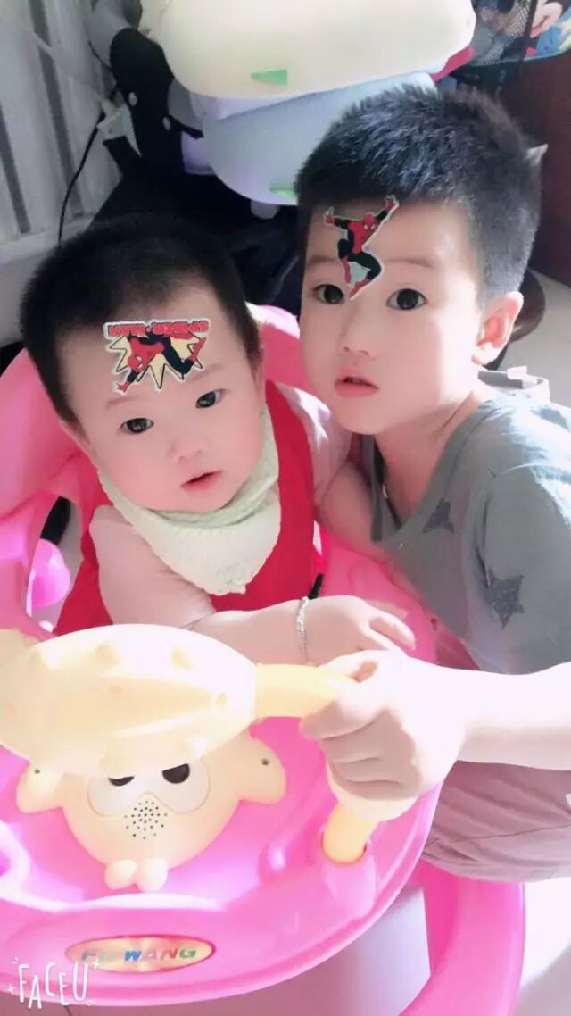 左边哥哥宇辰4岁(2013年出生),右边妹妹宇昕7个月(2016年出生)