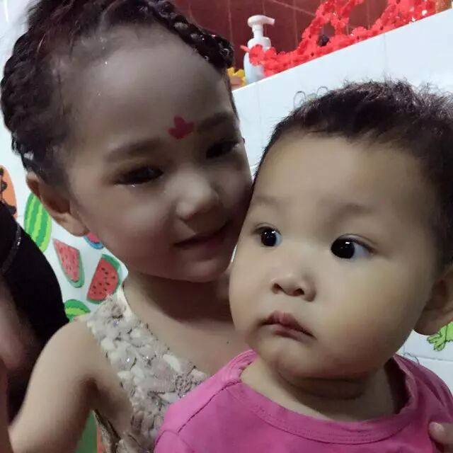 左边姐姐菁菁两岁半(2014年生),右边弟弟宏宏五个月(2016年生)