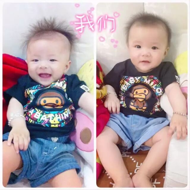 上面弟弟小小多2016出生下面哥哥小多2014出生照片都是五六个月的时候