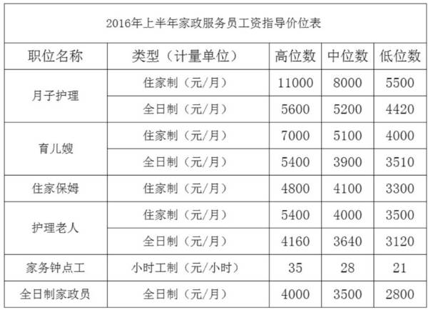 全职家政员低位数是2800元/月