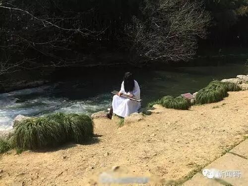 昨天,网友冰封的心923发帖称,在杭州植物园内锻炼时,突然看见有个穿白衣留长发的人,端坐在水边抚琴。整个画面是这样的↓