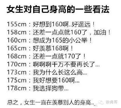 听说每个女生对自己的身高都有一些看法,各位请对号入座!