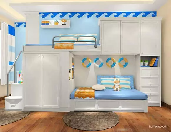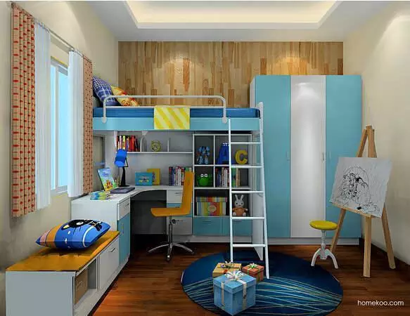 这款上下床在充分利用空间同时,把两个孩子的房间收拾得整整齐齐的。