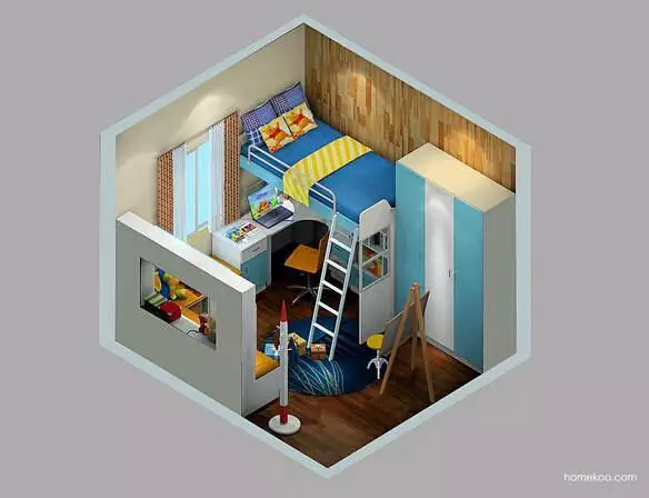 上面是小主人休息的地方,下面是书桌柜组合,是小朋友学习的地方。