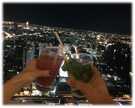 一杯莫吉托,一杯鸡尾酒,这是一个享受的夜色,尽情拍照,与曼谷夜景融为一体。(花费1200泰铢)。