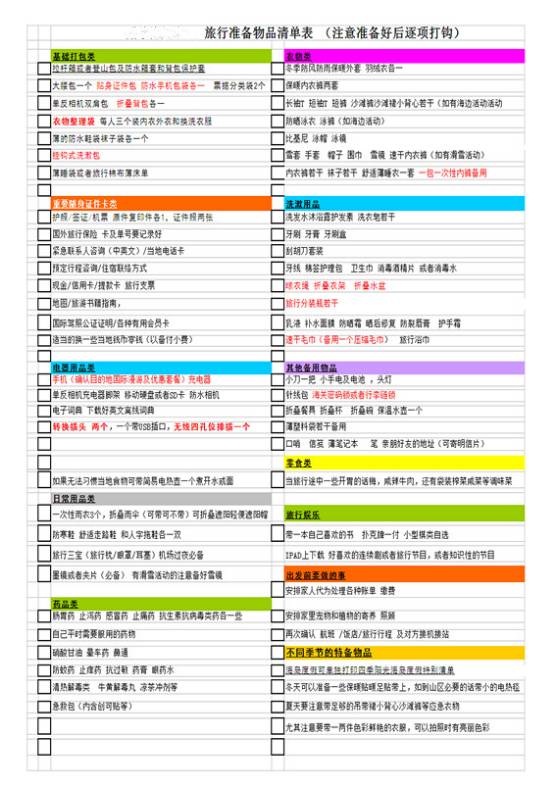 8、个人衣物、鞋子、首饰、化妆品、必备药物(下面有附件供参考)