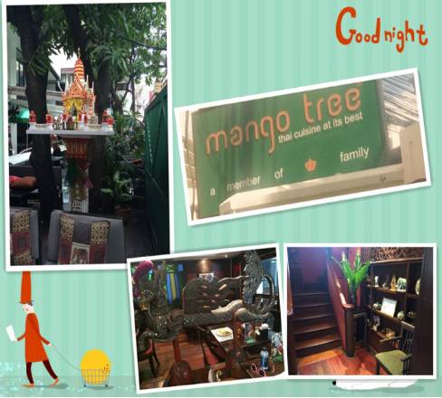 早上睡到自然醒,臭美妞收拾打扮,然后去曼谷评价很高mango tree餐厅,这家餐厅因为拥有百年芒果树才得名,从酒店过去并不远,可以走路也可以打车。W酒店有中文服务,所以一切都很方便。