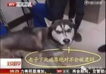 逃票的汪星人就是这只二哈。到了警卫室还会自己开门,蹭吃蹭喝……