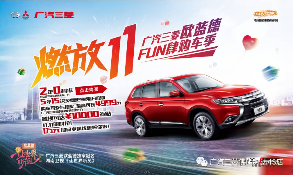 “燃”放“11”幸运礼:购车可参与抽奖,最高可获4,999元(广汽三菱积分商城等价积分)