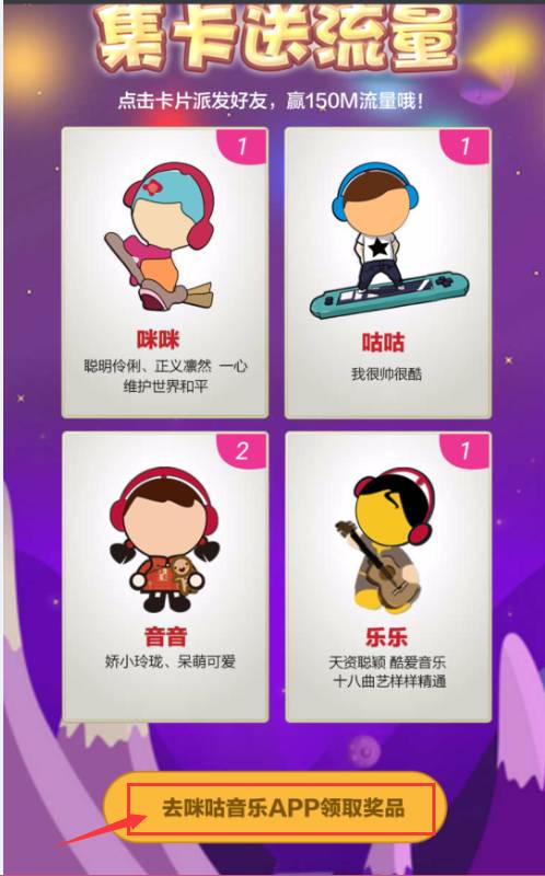 (集齐了卡片一定要记得去咪咕音乐客户端领取流量啊!!)