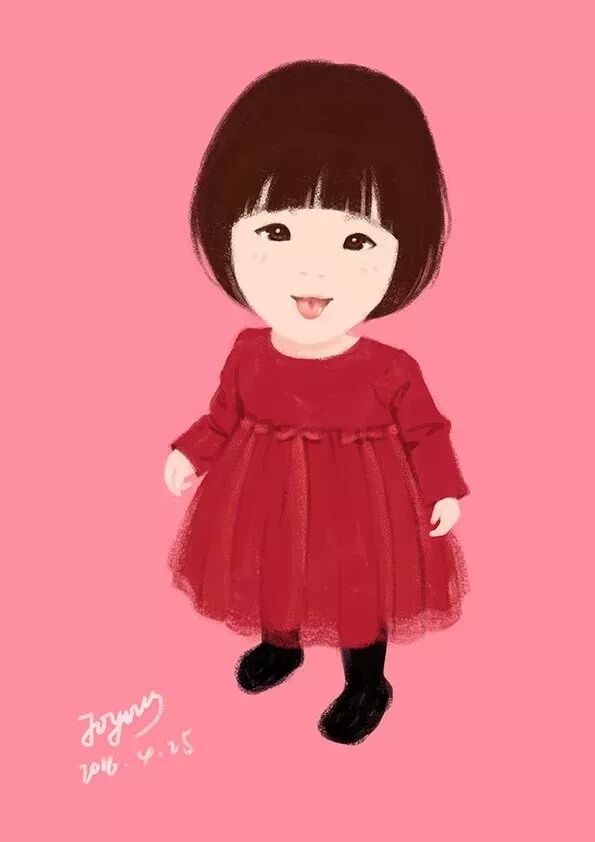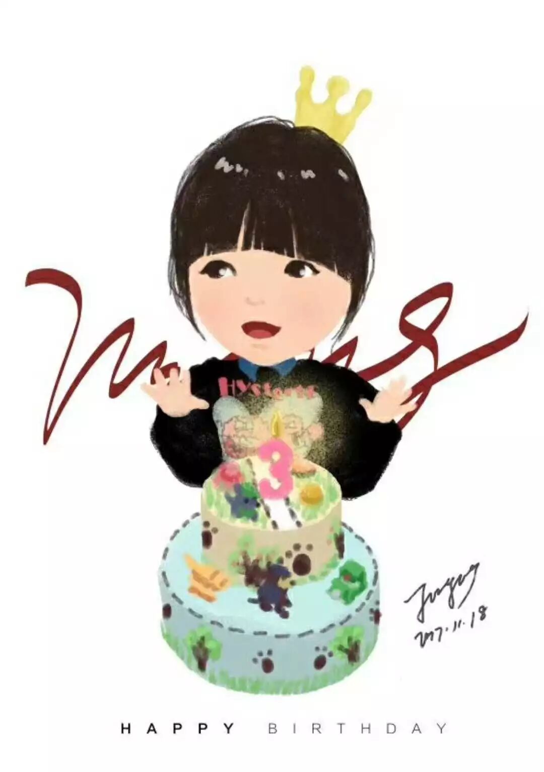 (欢大宝笔下姐姐黄小茗3岁生日Q版形象)