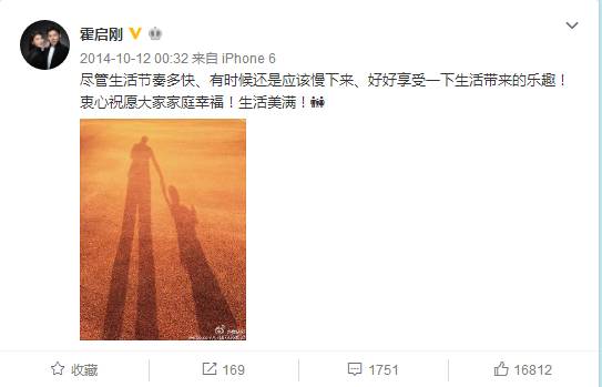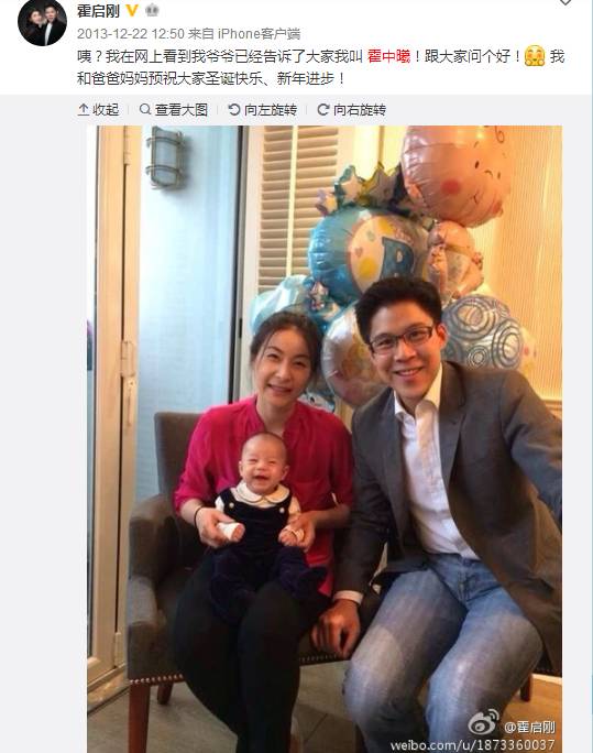 自从有了儿子后,霍启刚的微博上也开启了晒娃模式
