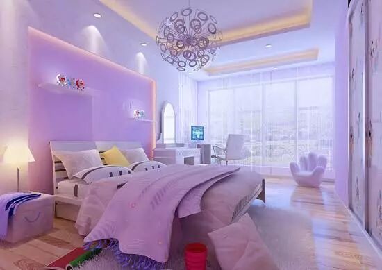 2、灯光,灯光对于房间的装饰来说是一个非常重要的方面,不同的灯光能为房间带来不同的氛围,女生房间应该以暖色、柔和灯光为主。