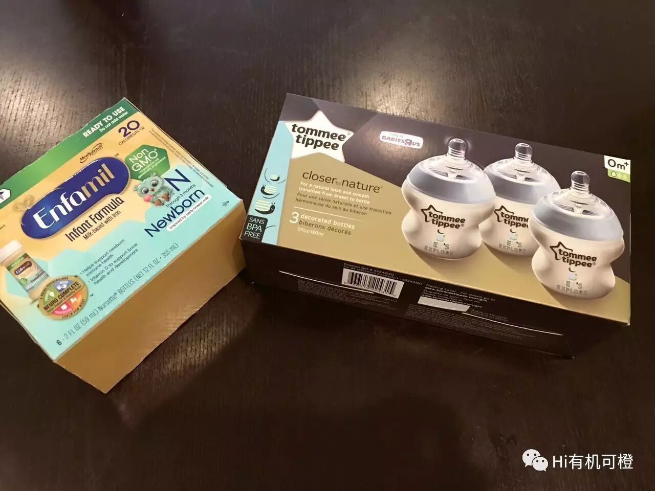 左边是橙汁三个月内母乳加美赞臣水奶。非常方便,无需加热开盖即食。右边的奶瓶买来都没用,就是买了个新鲜的(事实上真的不爱用 至今都一直在用美德乐的奶瓶加一次性奶嘴)