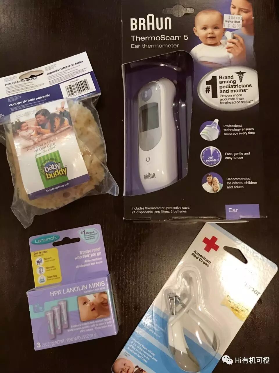 这些也是必备,因为美国的母婴店,日本产品不多,所以没有找到贝亲的指甲剪,就随便买了一个带放大镜的。耳温枪确实方便,只要哺乳期,我就没断过乳头霜。洗澡的天然海绵很好用。